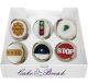 Non-edible decorations: Some of our cakes and cupcakes have wired sugar/silk flowers inserted safely into the cake/cupcake. These wired decorations are non-edible and must be removed before cutting and serving.