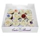 Non-edible decorations: Some of our cakes and cupcakes have wired sugar/silk flowers inserted safely into the cake/cupcake. These wired decorations are non-edible and must be removed before cutting and serving.