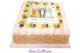 • The sides of the square cake are covered with classic rainbow sprinkles.