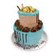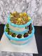 2 Tier Sky Blue Cake with chocolate covered strawberries.