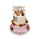 Pink and White fresh cream Two Tier Drip Cake with strawberries.